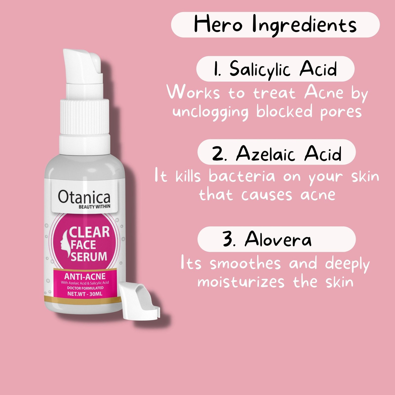 Introducing the ultimate solution for acne-prone skin—Otanica India’s Anti-Acne Face Serum. Infused with 2% salicylic acid, this powerful yet gentle serum works to tackle pimples, unclog pores, and prevent future breakouts.
